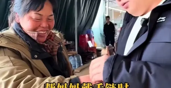 全紅嬋媽媽收到全紅嬋哥哥送的金手鍊,全紅嬋媽媽笑容滿面,這個婦女節過得真開心