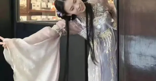 陳芋汐穿上紫色漢服歪頭比耶,青春可愛的樣子真討喜