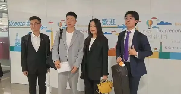 享受人生!馬龍楊倩率團訪問台灣,龍隊西裝筆挺下飛機就炫珍珠奶茶