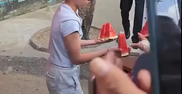 暖心!全紅嬋請群眾吃西瓜+給奶奶一沓現金,和哥哥騎電動車出行