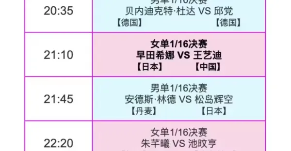 __央視直播冠軍賽,王藝迪早田希娜蒯曼金娜英向鵬雨果出戰,附賽程