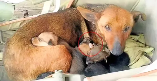 寒冬,流浪狗媽媽和狗寶間,竟「伸出一個小白手」, 仔細一看瞬間淚涌:是個女嬰