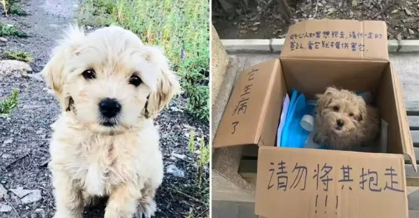 狗狗被裝紙箱丟在路邊,箱子上的字讓人心疼,原來丟它的並非主人