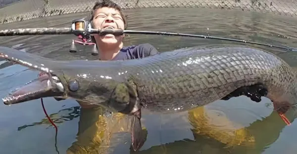 小男孩釣上一條大怪魚,身如蟒蛇嘴似鱷魚,岸上人大喊:快逃