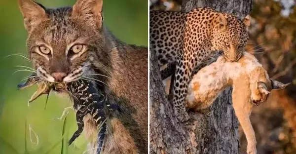 罕見的36張照片,蛙在交配中吞蛇,花豹擒拿獰貓,雄獅咬死鬣狗