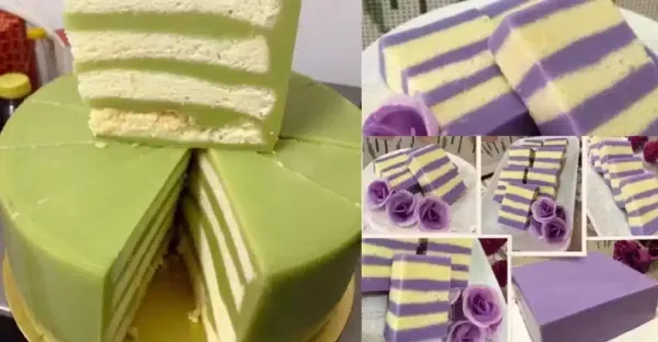 Pandan Layer Cake 班蘭千層蛋糕的 + Yam Layer Cake 芋頭千層蛋糕,美味又便宜