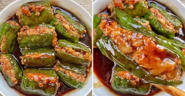 虎皮青椒釀肉,肉嫩多汁,青椒入味,醬汁濃郁,拌米飯真的絕了