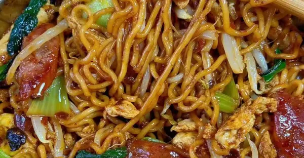 臘腸炒麵嘎嘎炫…我媽這手藝真的可以開店了! 老乾媽雞蛋臘腸炒麵!(食譜在評論區⬇️)