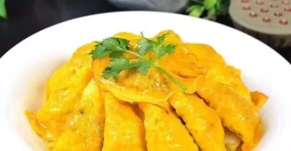 雞蛋煎好後,放一些肉餡和它,自製手工蛋餃,我家逢年過節就吃!