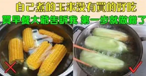 自己煮的玉米沒有外面的好吃,買早餐的大爺告訴我,第一步做錯了,難怪玉米又老又硬不好吃!