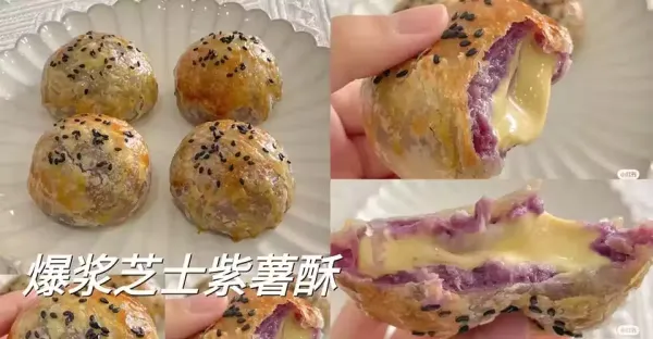 真沒想到啊.......這玩意這麼好吃!!【爆漿芝士紫薯酥】