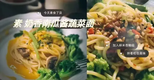 素食~奶香南瓜醬蔬菜面、涼拌碎米杏鮑菇