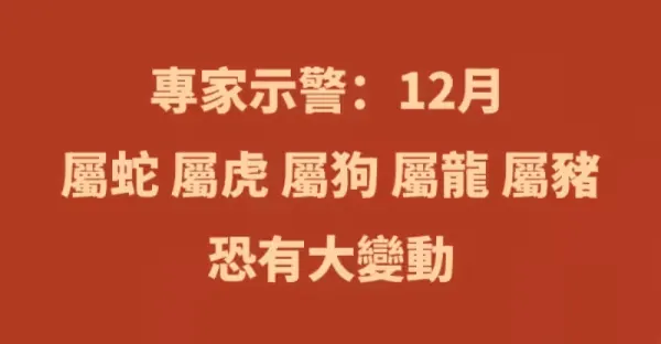 專家示警:12月「屬蛇 屬虎 屬狗 屬龍 屬豬」恐有大變動