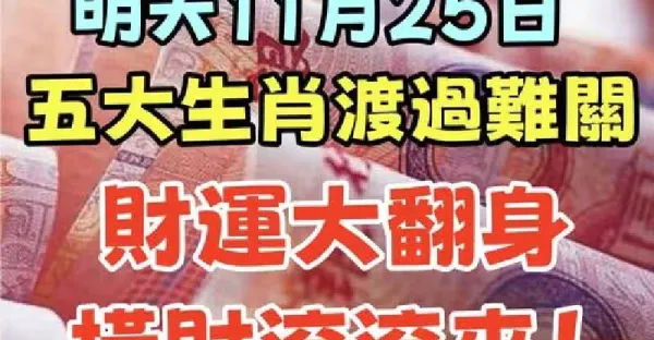 明天11月25日,五大生肖渡過難關,財運大翻身,橫財滾滾來