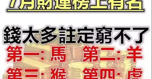 偷偷告訴你:7月份,有五大生肖【財運好到爆 】