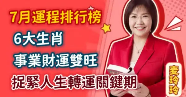 7月運程排行榜「6大生肖事業財運雙旺」捉緊人生轉運關鍵期