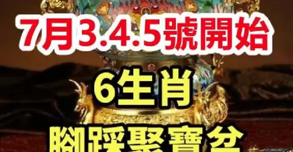 7月3.4.5號開始腳踩聚寶盆,六生肖開始走好運 !