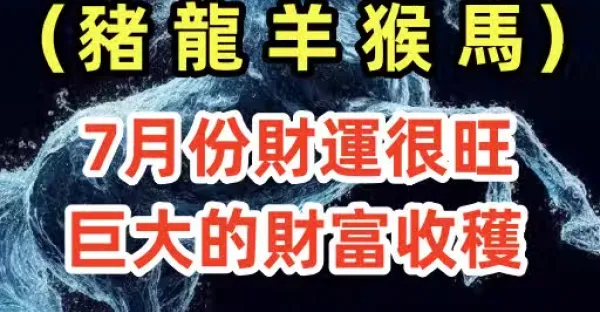 (豬 龍 羊 猴 馬)7月份財運很旺,巨大的財富 收穫,幫他們轉一下!