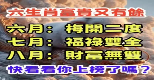 六月梅開二度,七月福祿雙全,八月財富無雙