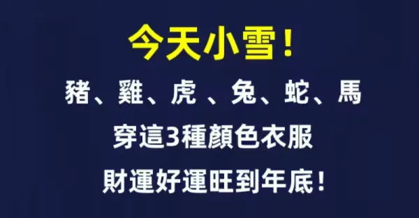 今天小雪「豬、雞、虎、兔、蛇、馬」穿這3種顏色衣服, 財運好運旺到年底!
