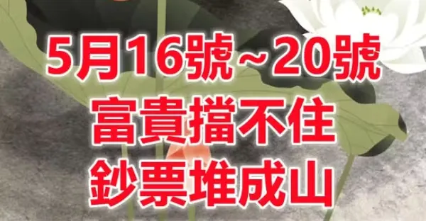 5月16號~20號富貴擋不住,鈔票堆成山,四生肖財運一路發!