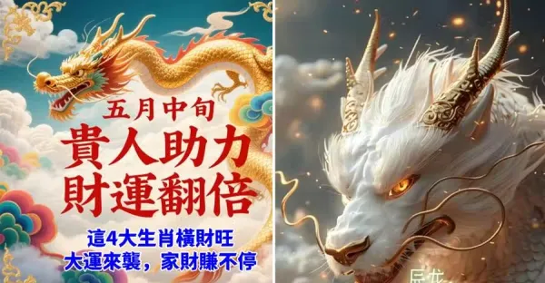 五月中旬,貴人助力,財運翻倍,這4大生肖橫財旺,大運來襲,家財賺不停