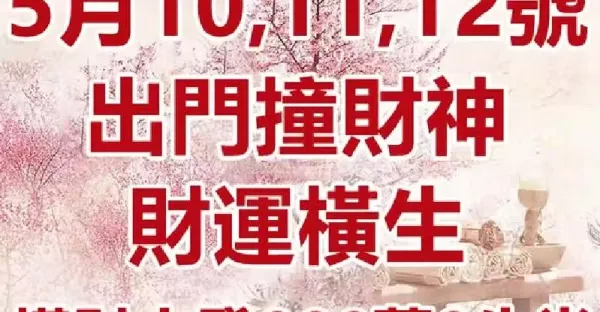 5月10,11,12號出門撞財神,財運橫生,橫財大發的八生肖
