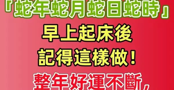 4月30日是罕見的「蛇年蛇月蛇日蛇時」早上起床後記得這樣做!整年好運不斷、財神住你家