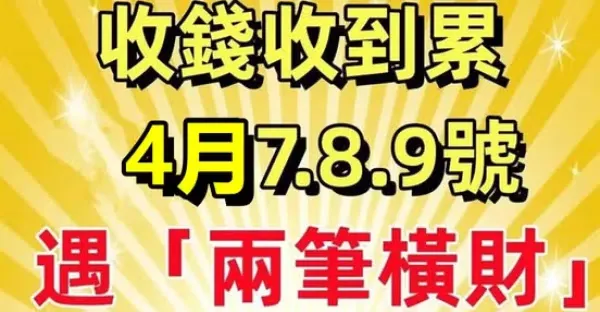 收錢收到累!4月7.8.9號遇「兩筆橫財」日子一順百順的生肖