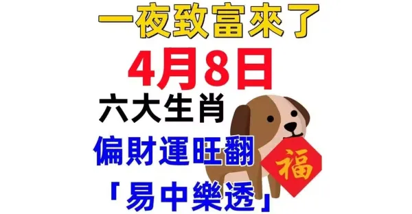 4月8日,偏財運旺翻「易中樂透」的生肖!
