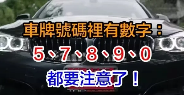 有車的人注意了!車牌號碼有「5、7、8、9、0」,恭喜你「好運連連聚錢財」啦!!