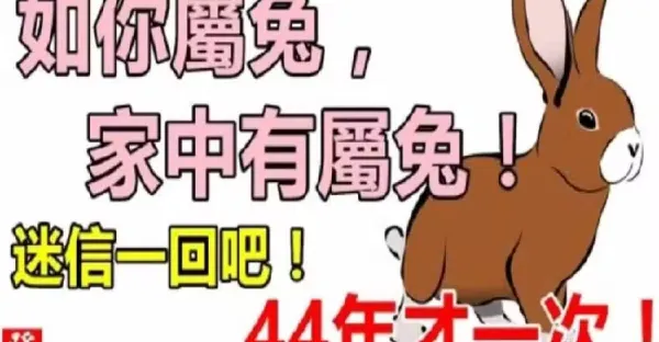 如果你不屬兔,你最愛的人屬兔,或家中有屬兔,44年才一次!迷信一回吧