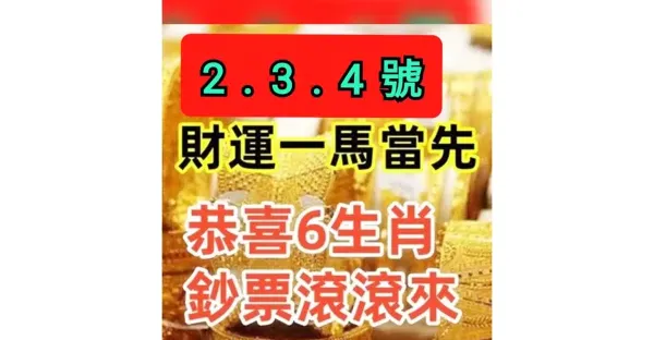 4月2.3.4號財運一馬當先,恭喜6生肖鈔票滾滾來!