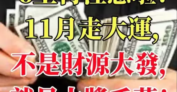 六大生肖注意了!11月9.10.11號鹹魚翻身,有一筆橫財砸來