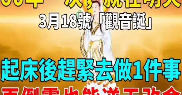 60年一次, 就在明天! 3月18號「觀音誕」,起床後趕緊去做1件事,再倒霉也能逆天改命!