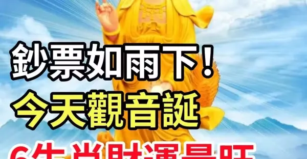 鈔票如雨下!今天觀音誕,6生肖財運最旺,第1名「錢自動上門」!