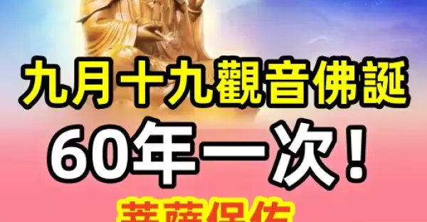 九月十九觀音佛誕,60年一次!觀音菩薩顯靈,4生肖受菩薩庇佑,喜事一件接一件,大發橫財獎,再不接就晚了~