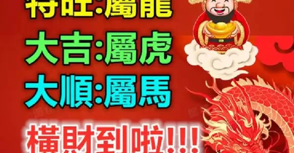 財神賜財排行榜,特旺、大吉、大順的生肖,橫財到啦