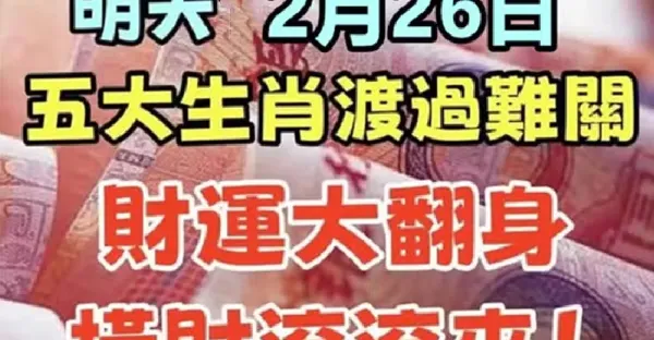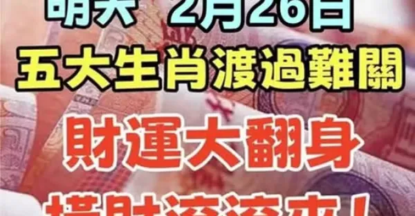 明天2月26日,五大生肖渡過難關,財運大翻身,橫財滾滾來!