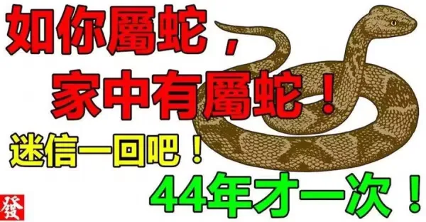 如果你不屬蛇,你最愛的人屬蛇,或家中有屬蛇,44年才一次!迷信一回吧!