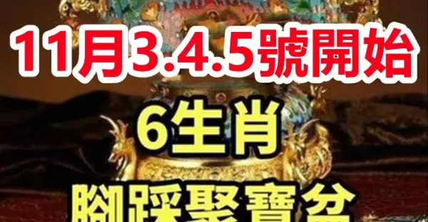11月3.4.5號開始腳踩聚寶盆,6生肖開始走好運