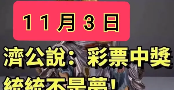11月3日 濟公說: 彩票中獎統統不是夢 ,六生肖轉運了