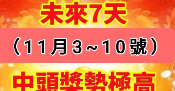 未來七天 ( 11月3 ~ 10號 )中獎勢極高的生肖