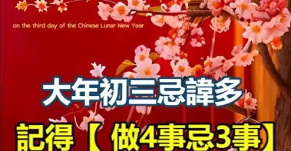 大年初三忌諱多,記得「做4事忌3事」,遵循老傳統,人旺財也旺!