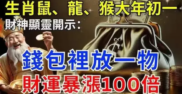 財神顯靈開示:生肖鼠、龍、猴大年初一,錢包里放一物,讓你財運暴漲100倍,財源滾滾來!