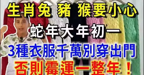 生肖兔、猴、豬要小心,蛇年大年初一,這3種衣服千萬別穿出門,否則霉運一整年