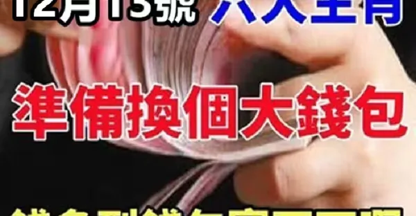 12月13號:六大生肖準備換個大荷包,錢多到錢包塞不下啊!