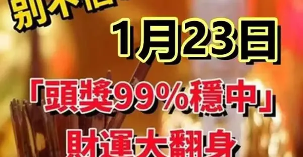 1月23日「頭獎99%穩中」財運大翻身,發家致富的生肖!