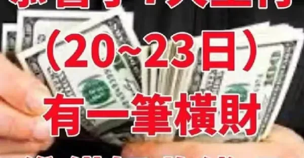 恭喜了7大生肖,在未來三天( 1月20~23日)即將有一筆橫財!準備好收錢吧