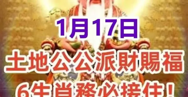 1月17日:土地公公派財賜福,6生肖務必接住!接了就有頭獎中